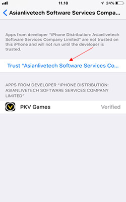 - Setelah itu akan muncul pilihan, Klik "Trust" dan kembali lagi ke app PKV Games