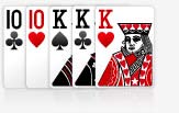 Jika Bandar dan pemain mendapatkan tingkat kartu yang sama misalnya 2 pair dengan pair yang sama, maka akan draw Member akan mendapatkan bayaran double jika mendapatkan kartu Royal Flush, contoh Royal Flush: